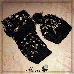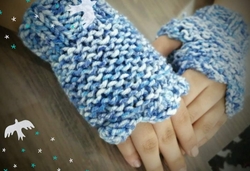 قفازات شتويه كروشيه مزينه بالخيوط يدوية الصنع بيضاء اللون